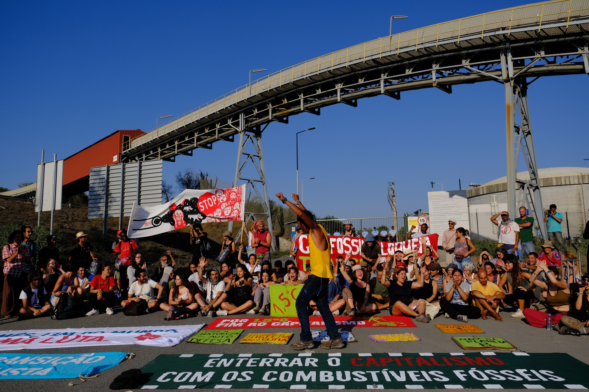A nossa ação não é contra as pessoas cujas vidas possam ser por ela afetadas de alguma forma, nem é dirigida à polícia ou aos trabalhadores. A nossa ação é contra a injustiça climática, o aumento de custo de vida, o capitalismo e a indústria fóssil. Travaremos uma das infraestruturas nevrálgicas que alimenta este sistema de exploração e opressão. Travamos esta infraestrutura porque temos o dever de proteger e assegurar a vida de todas nós e a salvaguarda do equilíbrio climático. Se a nossa ação causar incómodos para algumas pessoas, nomeadamente os trabalhadores do Porto de Sines, queremos expressar que o fazemos porque evitar o colapso civilizacional exige criar disrupção.